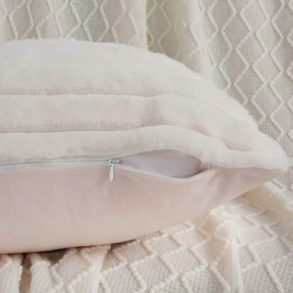 La parte delantera de las fundas, con su textura suave, no solo es atractiva, sino también resistente a la pérdida de material. La parte posterior, hecha de terciopelo, añade un extra de calidez. Además, cada funda cuenta con un cierre oculto que facilita la inserción y extracción del relleno, brindando comodidad al momento de usarlas.